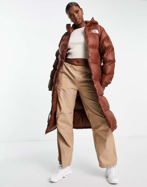 The North Face - Nuptse - Parka longue rembourrée de duvet avec ceinture - Marron
