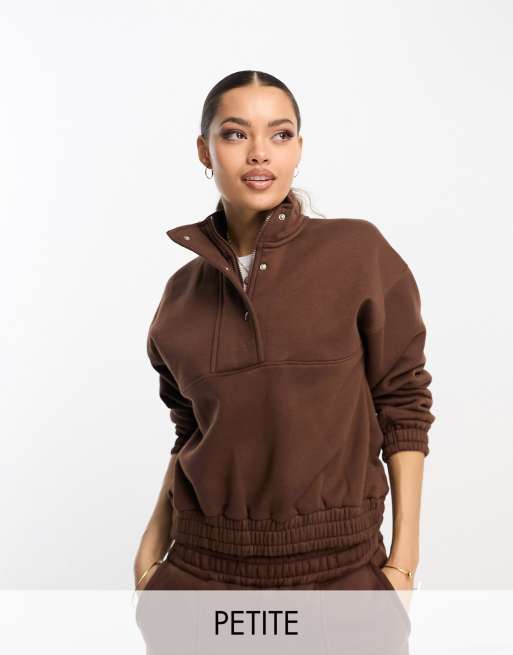 Threadbare Petite - River - Sweat d'ensemble court à col boutonné - Marron chocolat