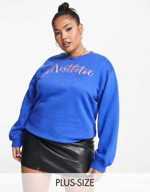 Threadbare Plus - Sweat de Noël brodé - Bleu
