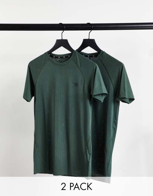 Threadbare - Active - Lot de 2 t-shirts de sport moulants - Kaki