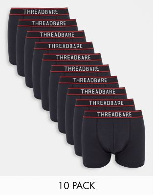 Threadbare - Alan - Lot de 10 boxers avec taille rayée - Noir