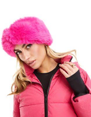Threadbare - Bandeau de ski en fausse fourrure - Rose vif