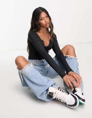 Threadbare - Body ultra stretch à manches longues et encolure à encoche - Noir