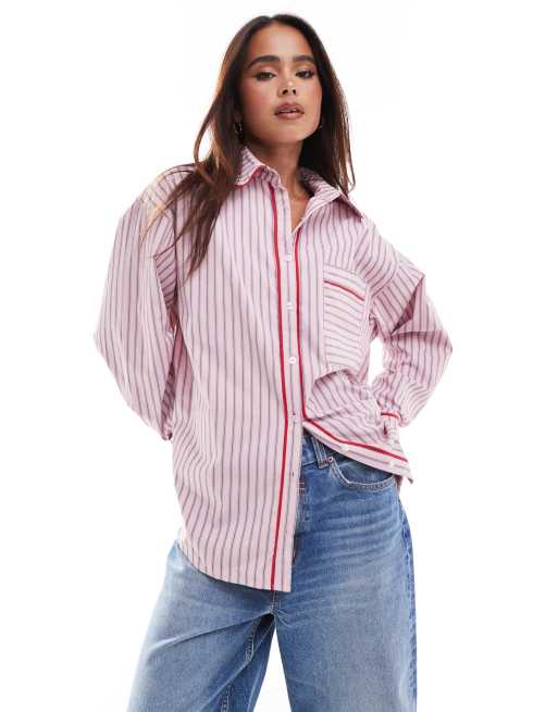Threadbare - Chemise à rayures avec bords contrastants - Rose et rouge