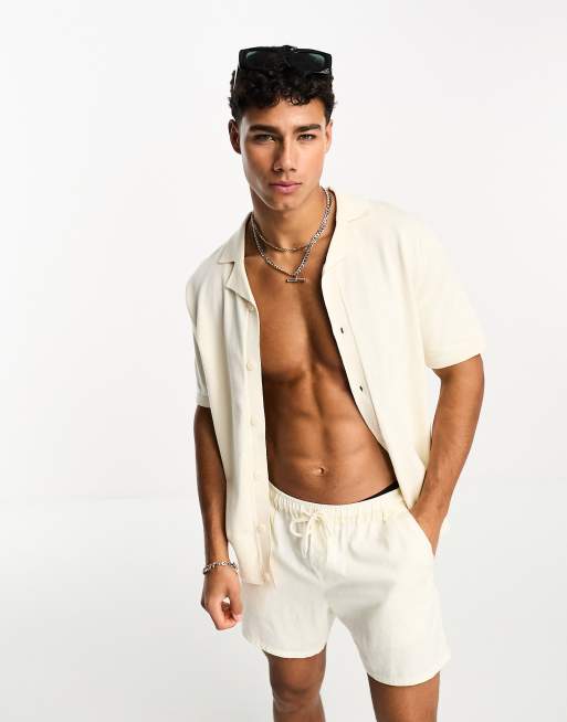 Threadbare - Chemise en maille avec col à revers - Blanc cassé