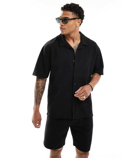 Threadbare - Chemise texturée avec col à revers et rayures - Noir