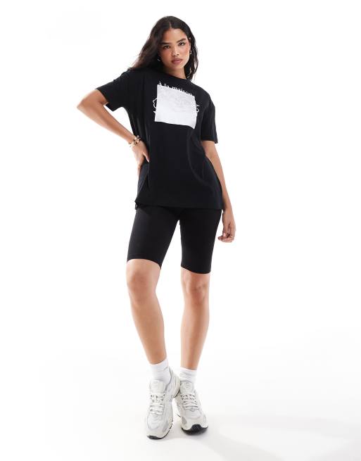 Threadbare - Ensemble short et t-shirt oversize à imprimé fleur - Noir