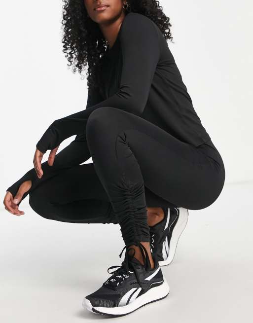 Threadbare - Fitness - Legging de sport d'ensemble froncé et noué sur les côtés - Noir