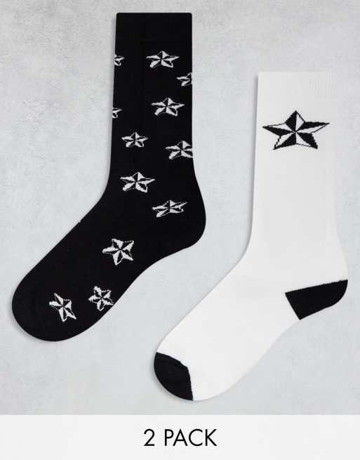 Threadbare - Lot de 2 paires de chaussettes de ski à motif étoiles - Noir et blanc