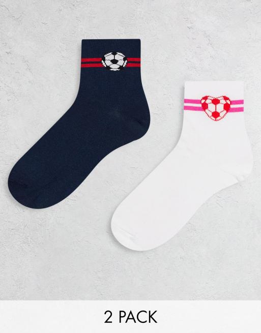 Threadbare - Lot de 2 paires de chaussettes motif football - Bleu marine et blanc