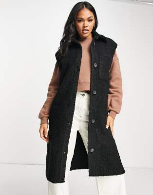 Threadbare - Nihal - Gilet long en maille bouclée - Noir
