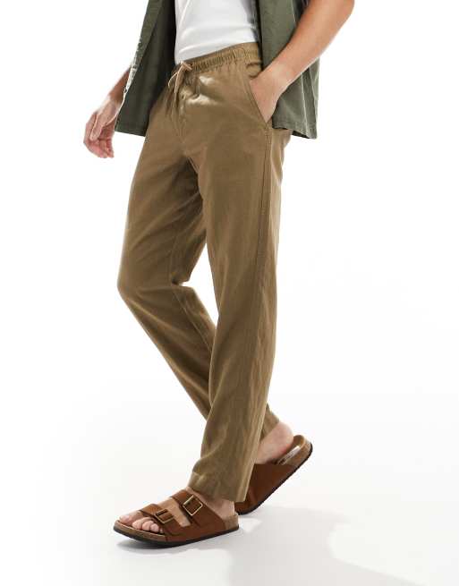 Threadbare - Pantalon en coton et lin avec taille élastique - Marron