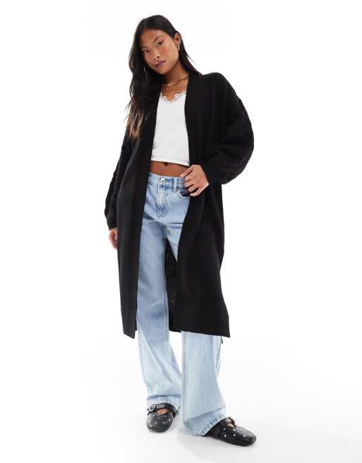 Threadbare Petite - Gilet long en maille torsadée - Noir