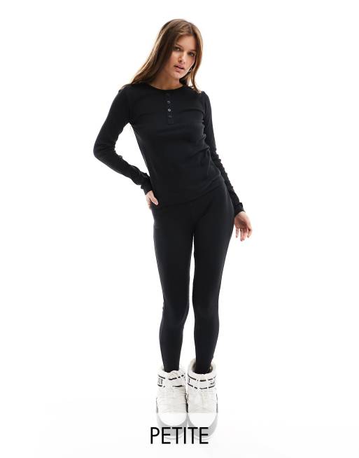 Threadbare Petite - Ski - Ensemble de sous-vêtement côtelé avec top et legging - Noir