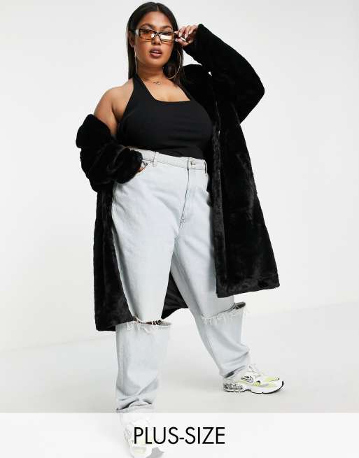 Threadbare Plus - Mae - Manteau fausse fourrure - Noir