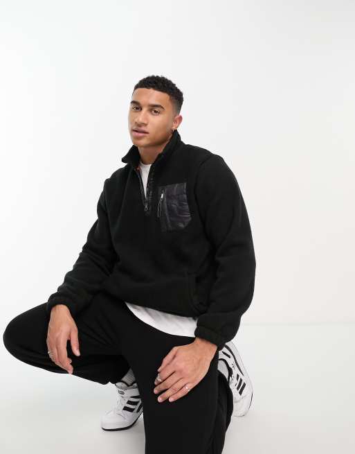 Threadbare - Polaire à enfiler en imitation peau de mouton avec col zippé - Noir