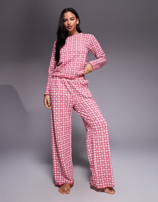 Threadbare - Saint-Valentin - Ensemble de pyjama en coton mélangé imprimé vichy avec cœurs - Rouge/blanc
