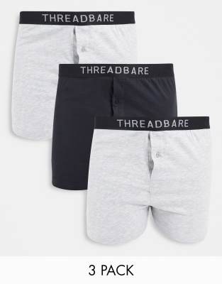 Threadbare - Stevie - Lot de 3 boxers coupe large - Noir et gris