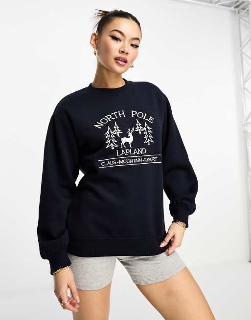 Threadbare - Sweat de Noël brodé - Bleu marine et blanc