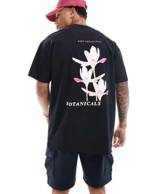 Threadbare - T-shirt oversize avec imprimé botanique au dos - Noir