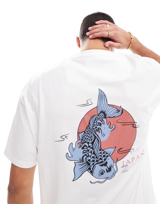 Threadbare - T-shirt oversize avec imprimé carpe koï au dos - Blanc