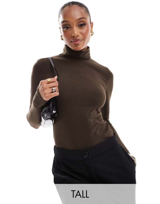 Threadbare Tall - Body manches longues à col roulé - Marron chocolat