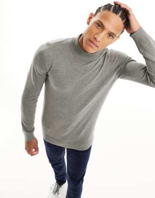 Threadbare Tall - Pull en coton à col roulé - Gris chiné clair