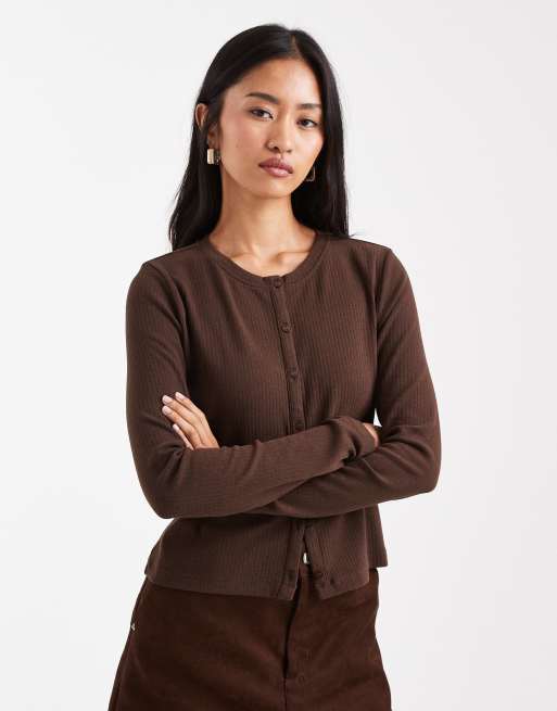 Threadbare - Top boutonné à manches longues en jersey - Marron chocolat