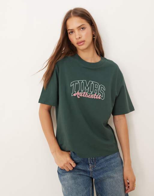 Timberland - T-shirt à manches courtes avec imprimé style universitaire - Vert