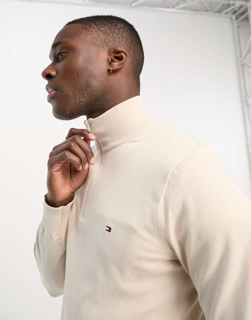 Tommy Hilfiger - 1985 - Pull en maille de coton à logo drapeau et col zippé - Beige