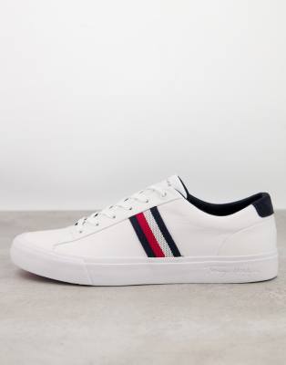 Tommy Hilfiger - Corporate - Baskets en cuir avec logo sur le côté - Blanc