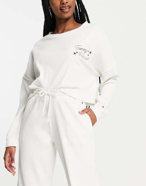 Tommy Hilfiger - Crop top côtelé doux en coton mélangé avec logo - Ivoire - IVORY