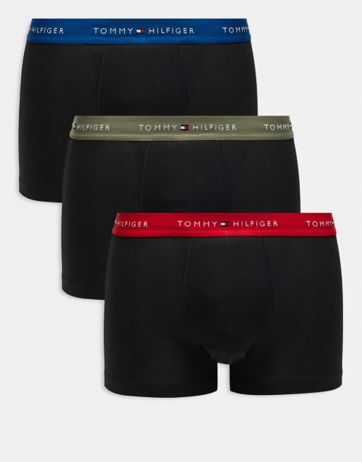 Tommy Hilfiger - Essentials - Lot de 3 boxers en coton avec taille griffée bleue/rouge/verte - Noir