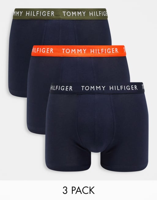 Tommy Hilfiger - Lot de 3 boxers avec taille kaki, orange et bleue - Bleu marine