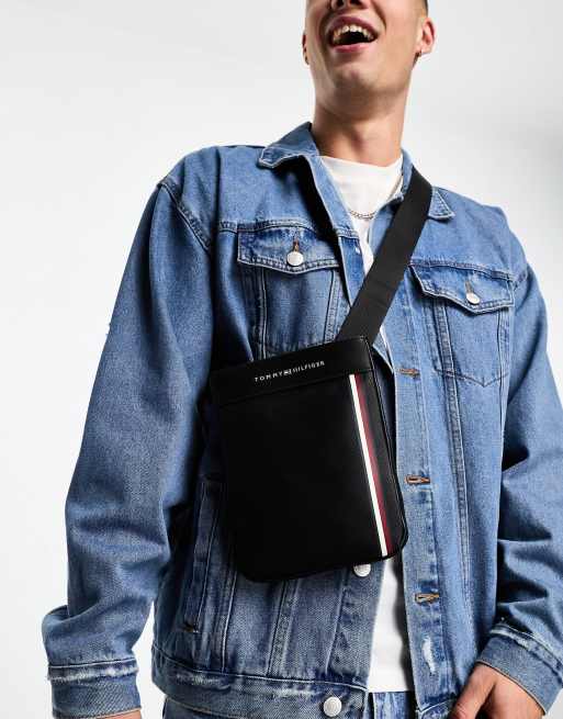 Tommy Hilfiger - Petit sac bandoulière en piqué et PU - Noir