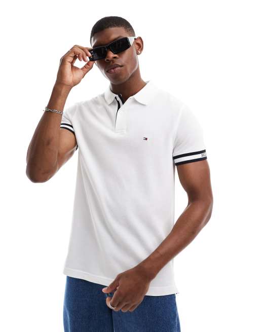 Tommy Hilfiger - Polo ajusté avec bord des manches à monogramme - Blanc