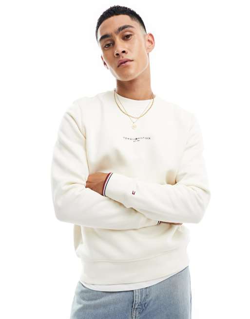 Tommy Hilfiger - Sweat-shirt ras de cou à logo - Crème