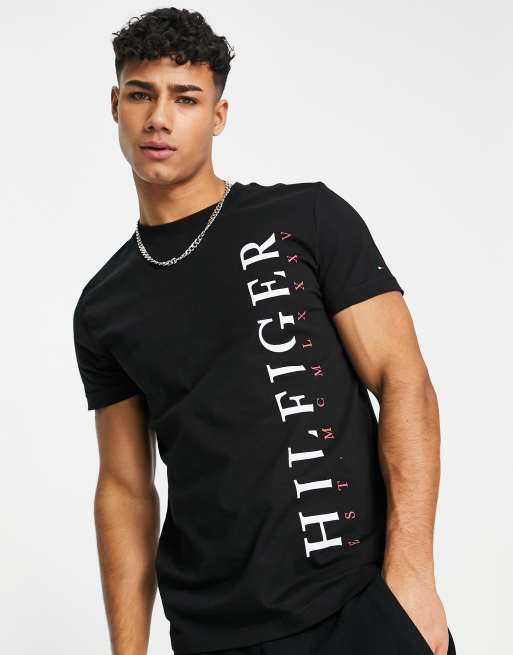 Tommy Hilfiger - T-shirt à logo vertical - Noir