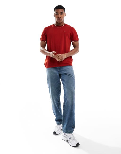 Tommy Hilfiger - T-shirt avec col à liserés - Rouge