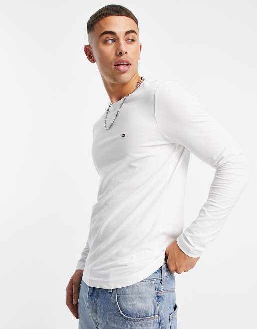 Tommy Hilfiger - T-shirt manches longues ajusté - Blanc