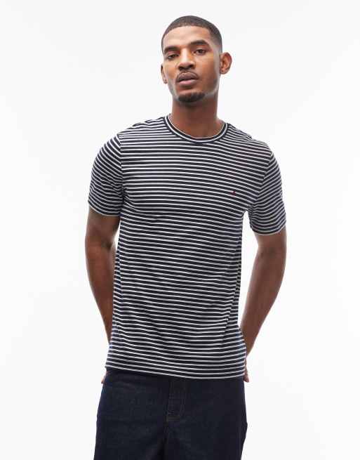 Tommy Hilfiger - T-shirt rayé à logo drapeau devant - Bleu marine et blanc