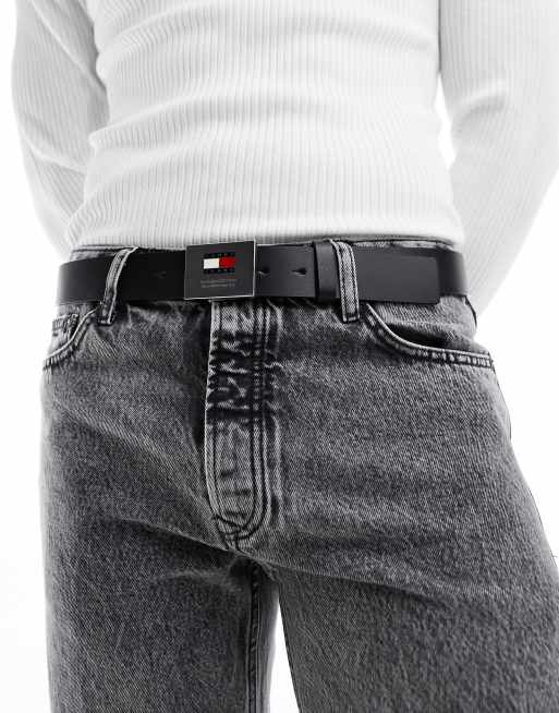 Tommy Jeans - 3.5 - Ceinture en cuir à logo drapeau - Noir