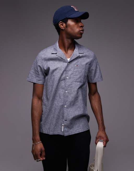 Tommy Jeans - Chemise boutonnée en lin - Bleu marine