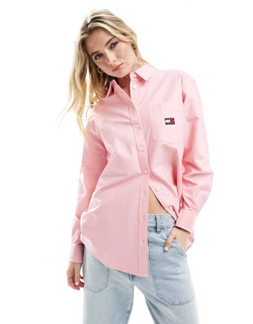 Tommy Jeans - Chemise coupe boyfriend à écusson - Rose