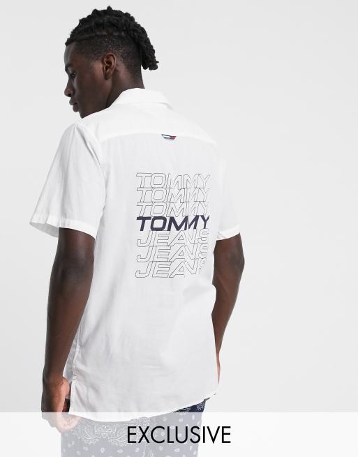 Tommy Jeans - Exclusivité ASOS - Camp - Chemise à manches courtes avec logo dans le dos - Blanc