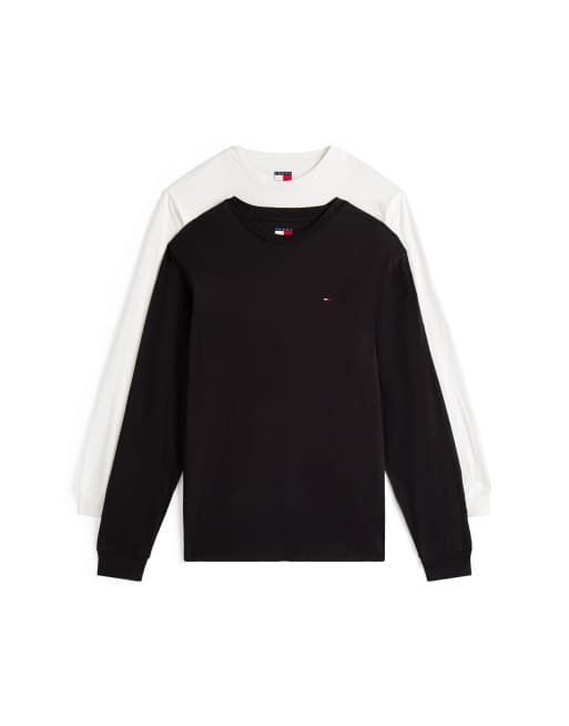 Tommy Jeans - Lot de 2 t-shirts manches longues ajustés à logo drapeau - Noir et blanc