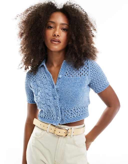 Tommy Jeans - Pull avec col polo, manches courtes et logo drapeau - Bleu