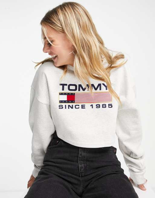 Tommy Jeans - Pull ras de cou ultra court - Gris