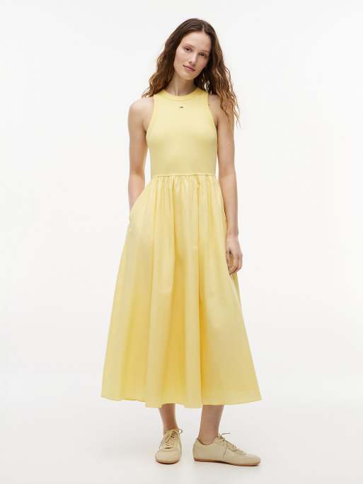 Tommy Jeans - Robe longue ajustée sans manches en popeline - Jaune