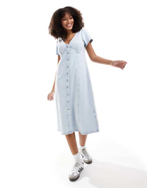 Tommy Jeans - Robe mi-longue ajustée et évasée - Bleu-gris